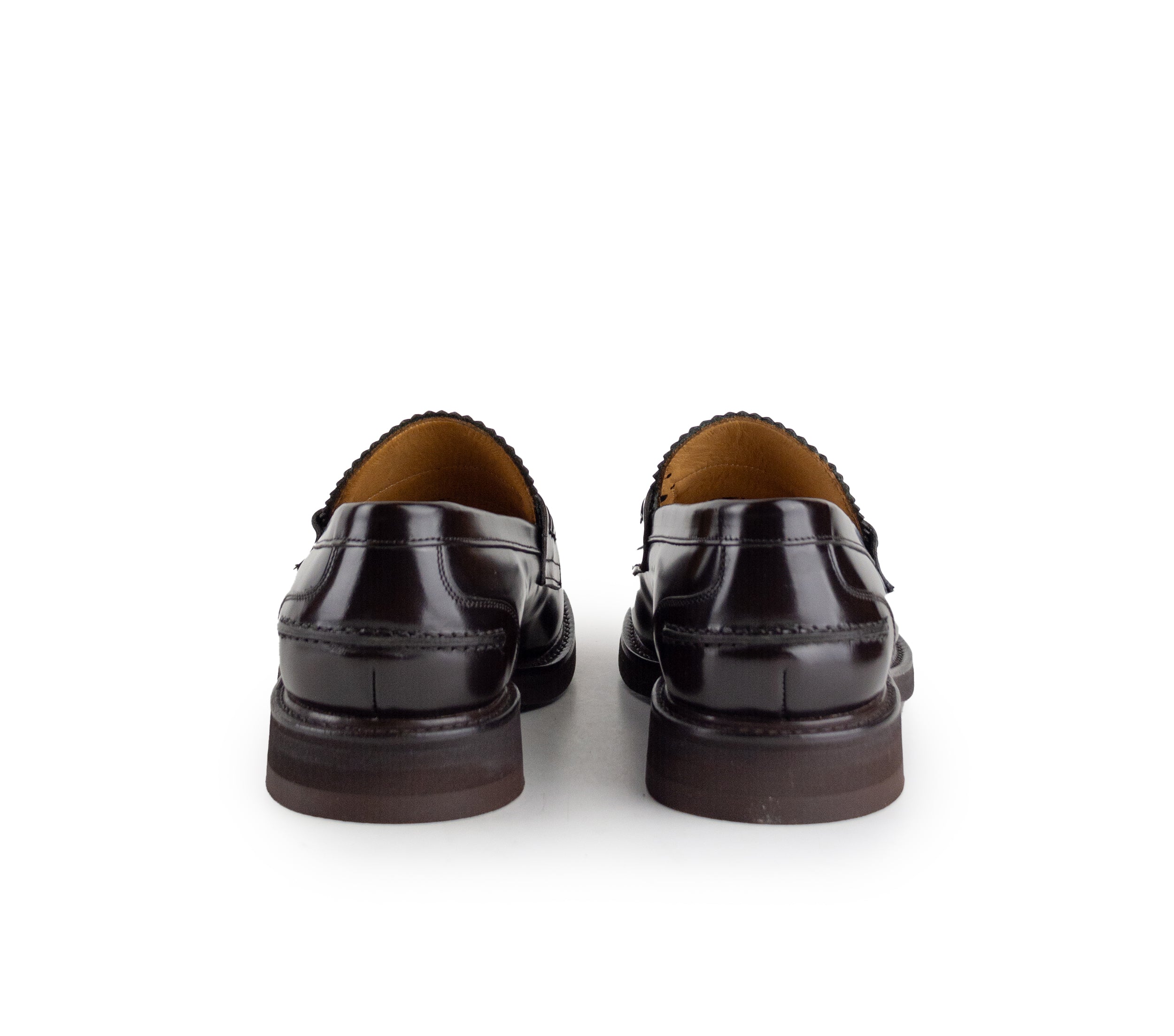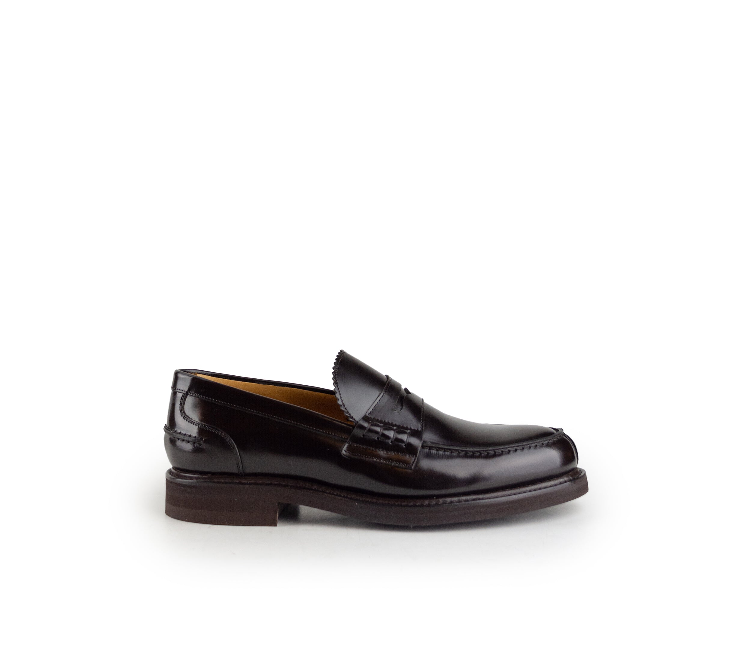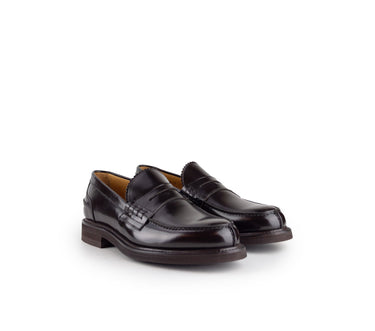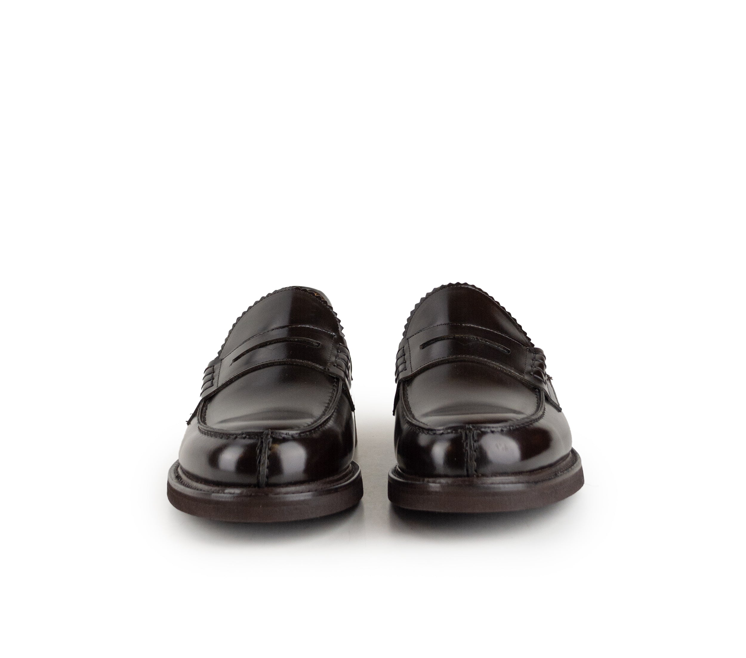 Scarpa mocassino realizzata in pregiato cuoio spagnolo lucidato, con raffinata costruzione Goodyear Welt.