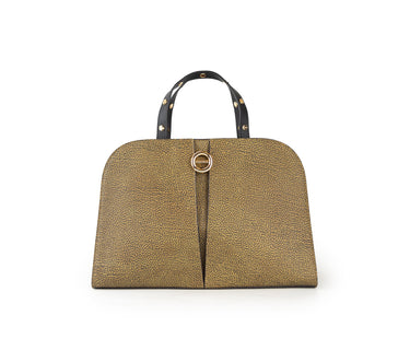 Realizzata in tela rivestita Op con dettagli in pelle, questa borsa presenta una fodera in tessuto effetto camoscio. La chiusura centrale esterna è dotata di zip in metallo con doppio cursore e piastrina logata. Dispone di uno scomparto esterno a chiusura magnetica, una tracolla regolabile e removibile in nastro logato, e una tasca interna aperta. Le metallerie sono in oro chiaro, la misura è medium.