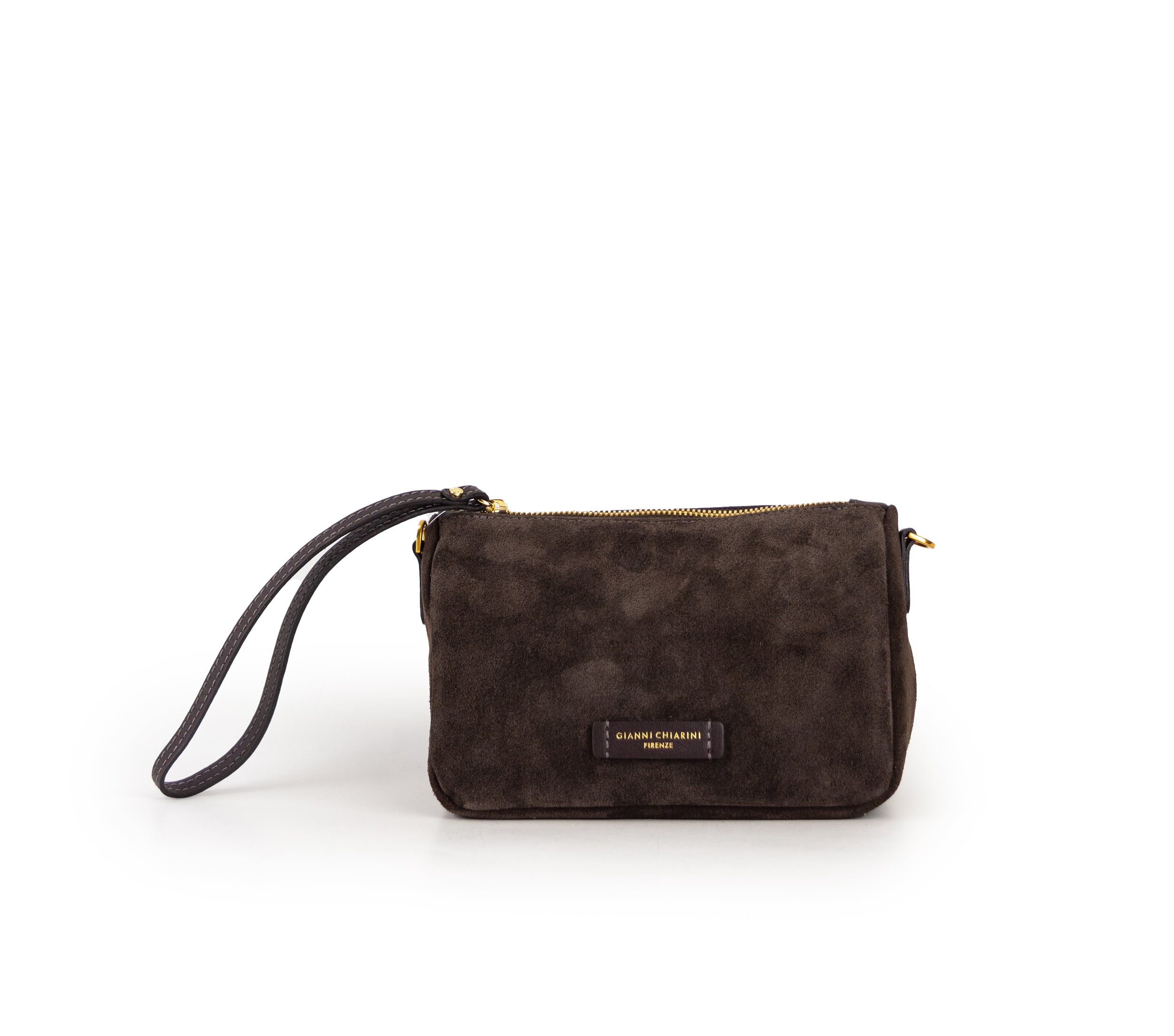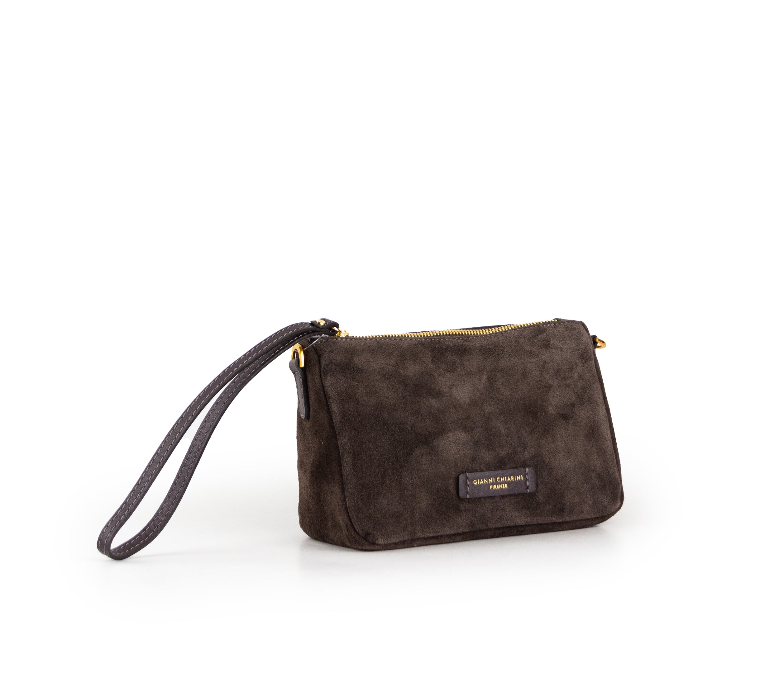La borsa Nora Pouch di Gianni Chiarini Firenze è lavorata in pregiata pelle scamosciata morbida al tatto. Disponibile con un elegante cinturino da polso e una tracolla regolabile, entrambi staccabili, offre versatilità e comfort. La chiusura con zip assicura praticità e sicurezza per i tuoi oggetti essenziali.