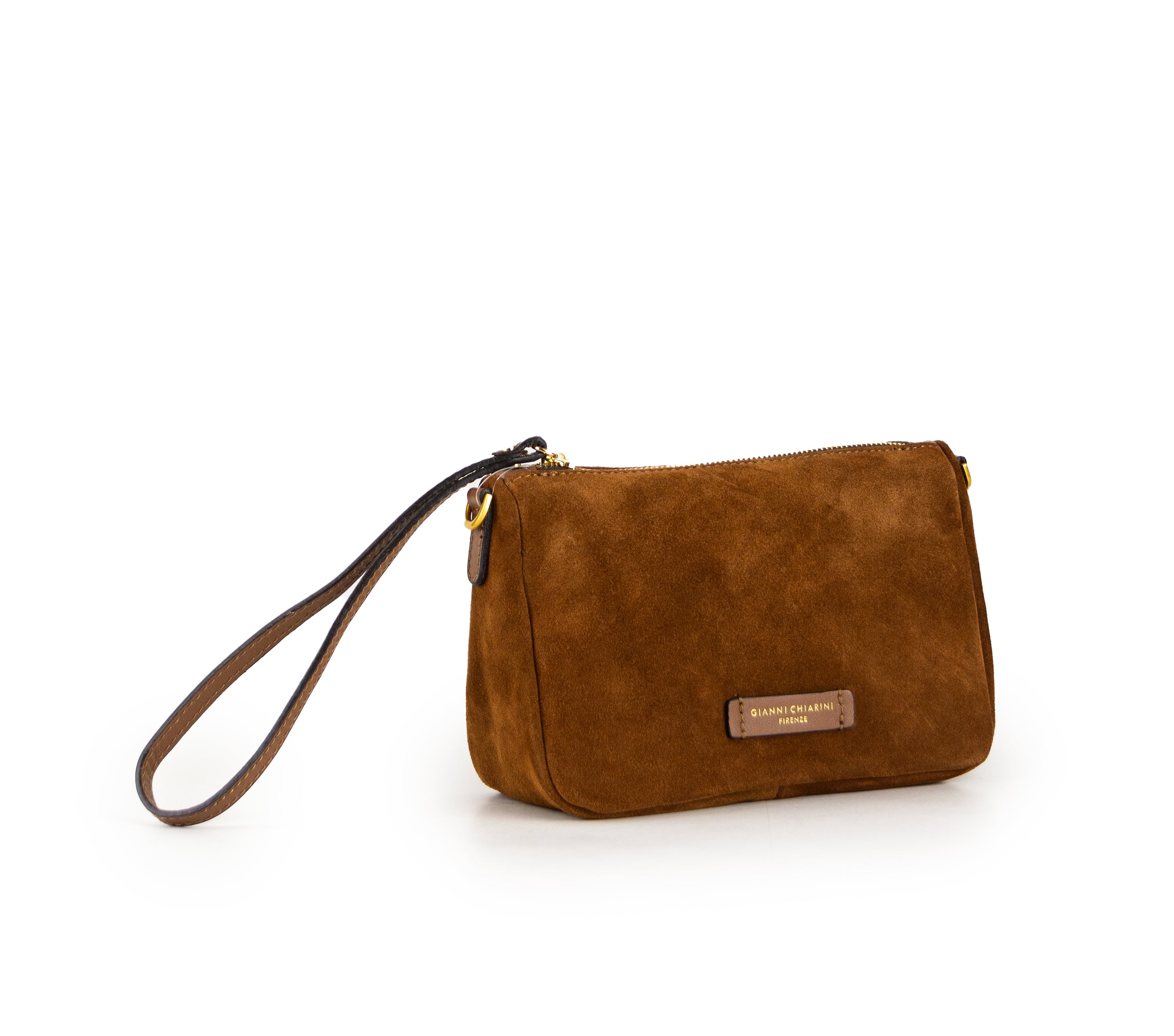 La borsa Nora Pouch di Gianni Chiarini Firenze è confezionata in pelle scamosciata di alta qualità. Dispone di un cinturino da polso e di una tracolla regolabile, entrambi rimovibili per versatilità d’uso. La chiusura con zip garantisce massima comodità e sicurezza.
