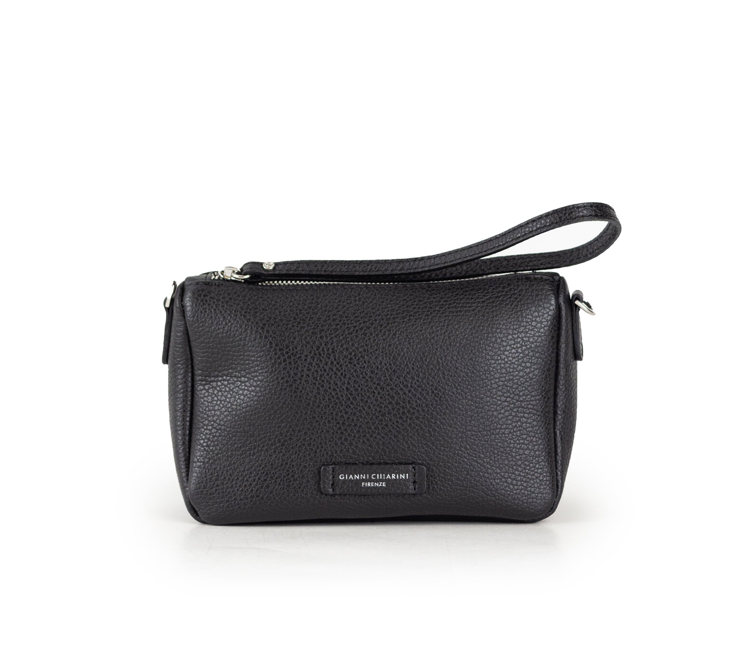La Nora Pouch di Gianni Chiarini è confezionata in pregiata pelle martellata. Presenta un cinturino in pelle per indossarla comodamente al polso e una tracolla regolabile e removibile, ideale per un utilizzo versatile e sofisticato.