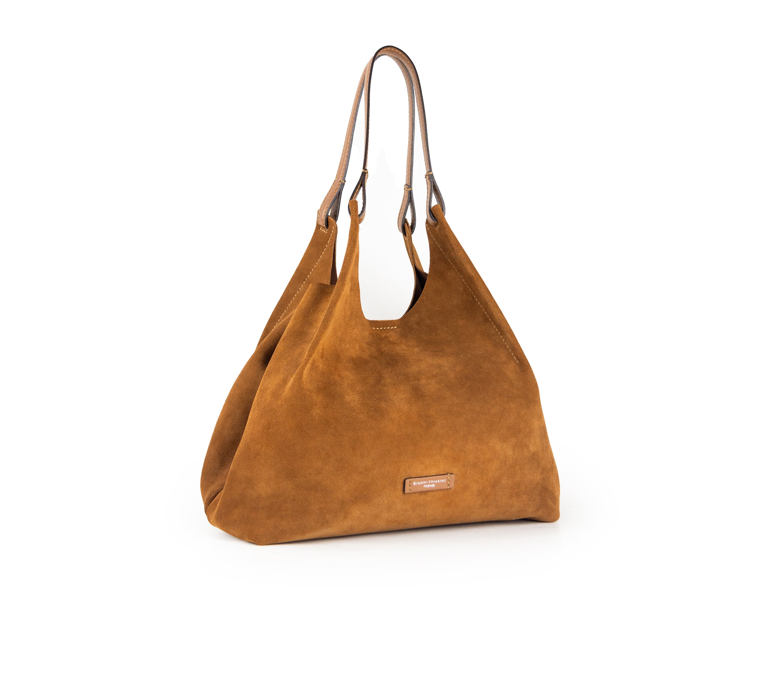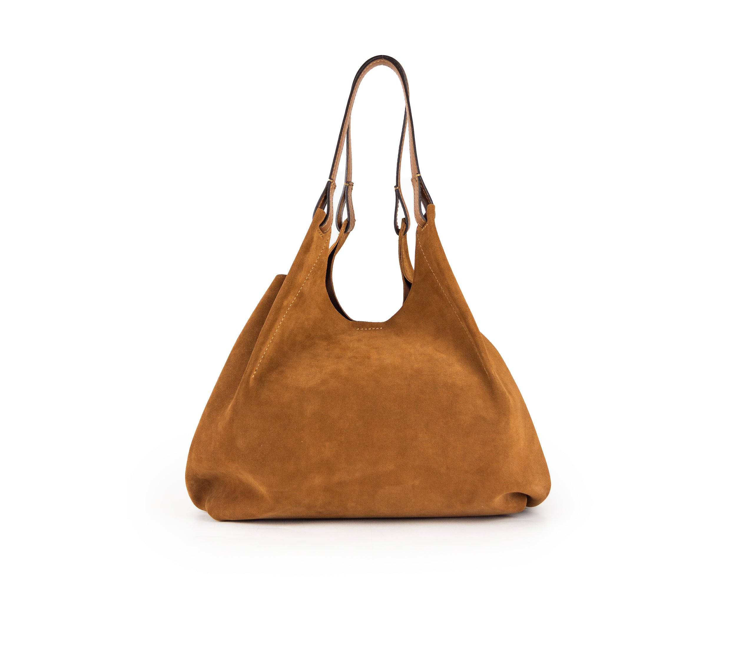 Il simbolo distintivo del brand DUA si caratterizza per un’estetica raffinata e moderna. Realizzata in pelle scamosciata morbida, questa borsa presenta un unico scomparto interno senza fodera, dettagli superiori in pelle martellata e doppi manici coordinati. Elegante nella sua semplicità, è l’accessorio perfetto per valorizzare ogni donna, da portare comodamente a spalla.