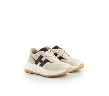 Le sneakers Hogan Hi-Fi reinterpretano al femminile la suola Hyperlight con tacchetti, presentando una platform rialzata che unisce altezza e raffinatezza. Ispirate allo stile sportivo anni ’80, combinano dettagli tecnici a un’estetica urbana, con linee sinuose e dinamiche. La tomaia, in soffice pelle scamosciata e nappa, è impreziosita da una maxi “H” laterale. Questo modello athleisure garantisce comfort superiore grazie alla soletta in memory foam che offre ammortizzazione e sostegno. Made in Italy, con suola in gomma di 6,5 cm e dotate di lacci extra e custodia in tessuto.