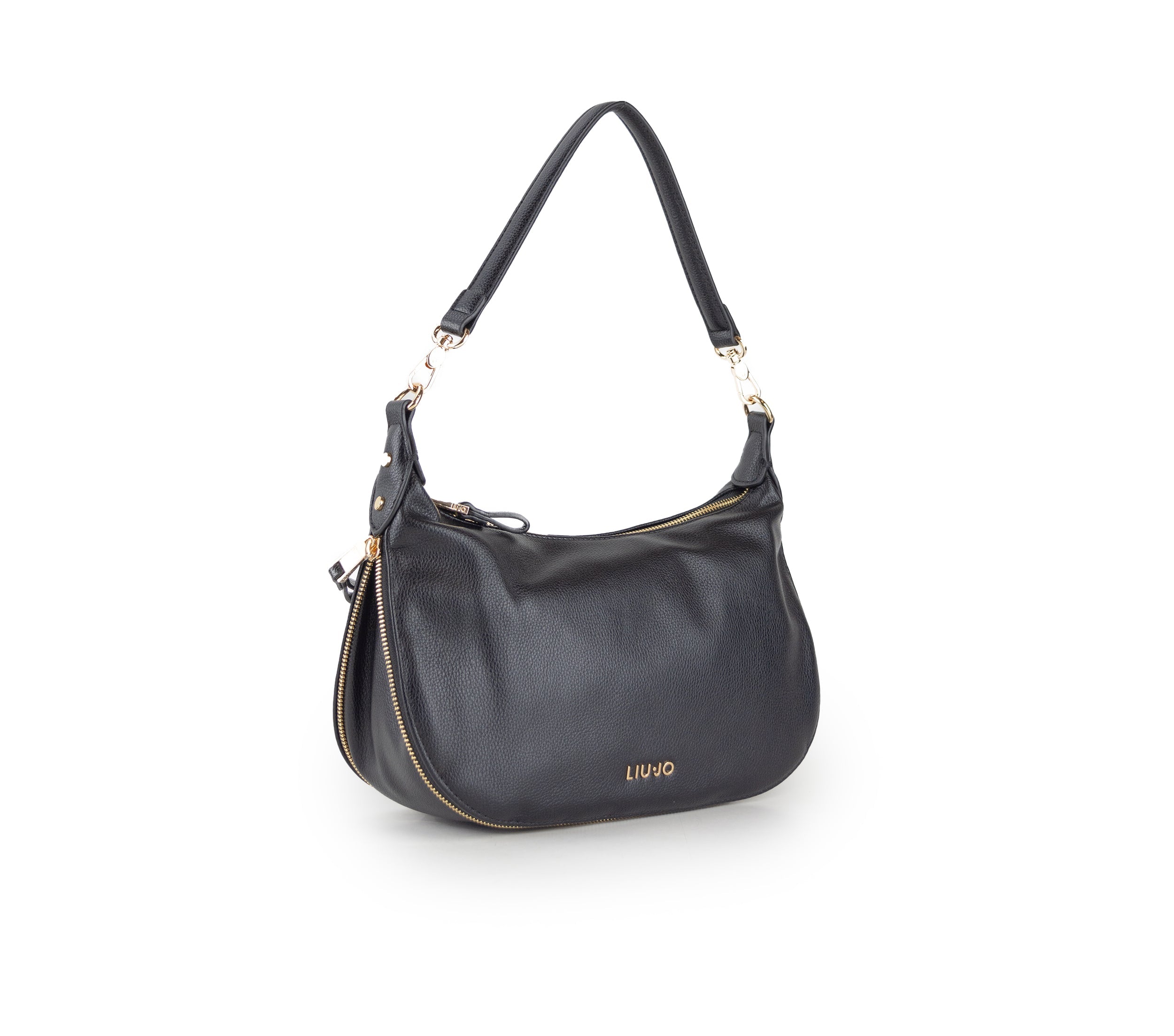 Borsa a mano grigia con stampa effetto bottalato, impreziosita dal logo in metallo sul davanti e dal dettaglio zip laterale. Dispone di un manico removibile e una tracolla in gros grain regolabile e staccabile, per portarla a spalla o come pochette. All’interno, presenta tasca e fodera, chiusura con zip. Un accessorio elegante della linea "Liu Jo Better", versatile e di grande stile.