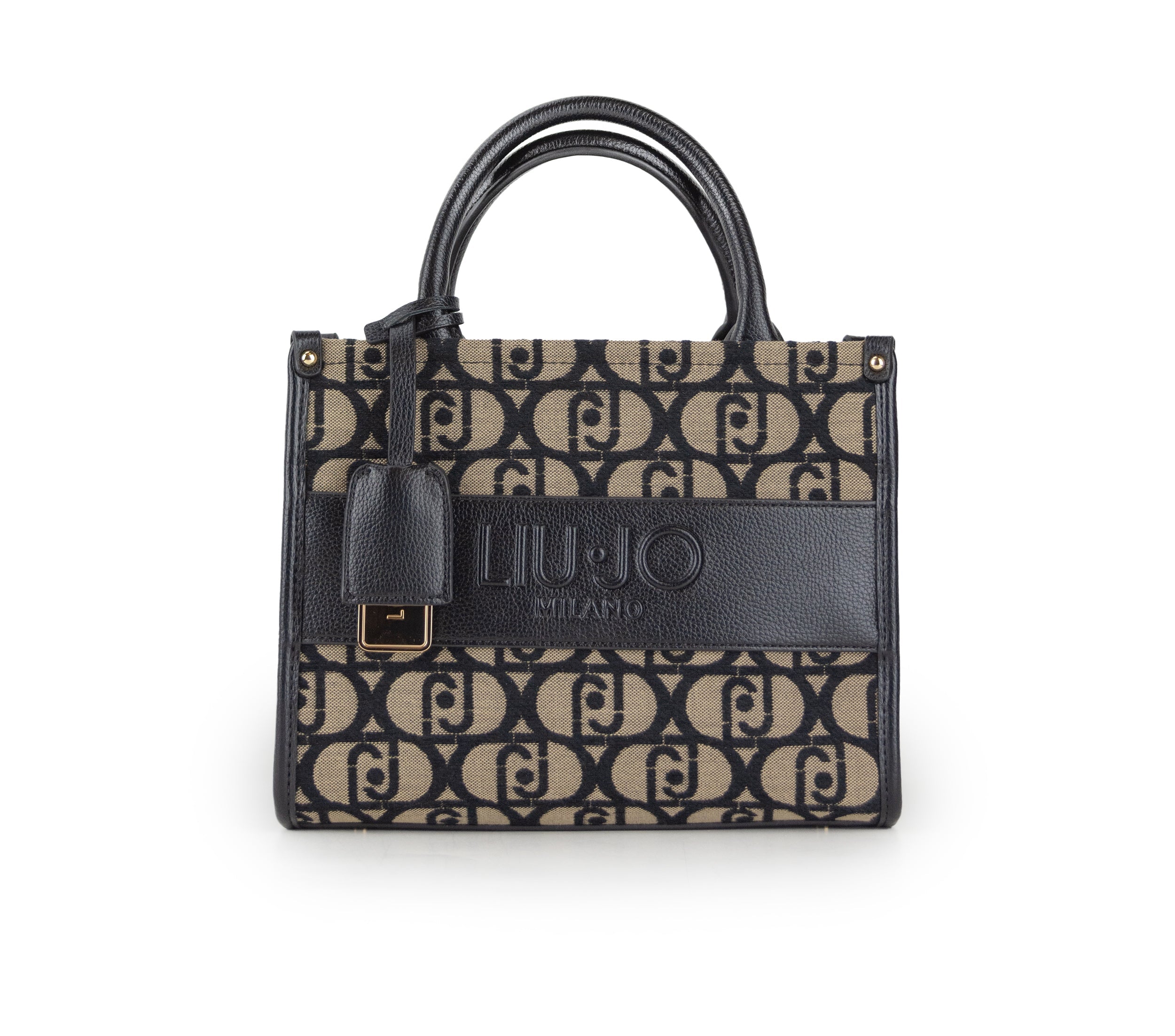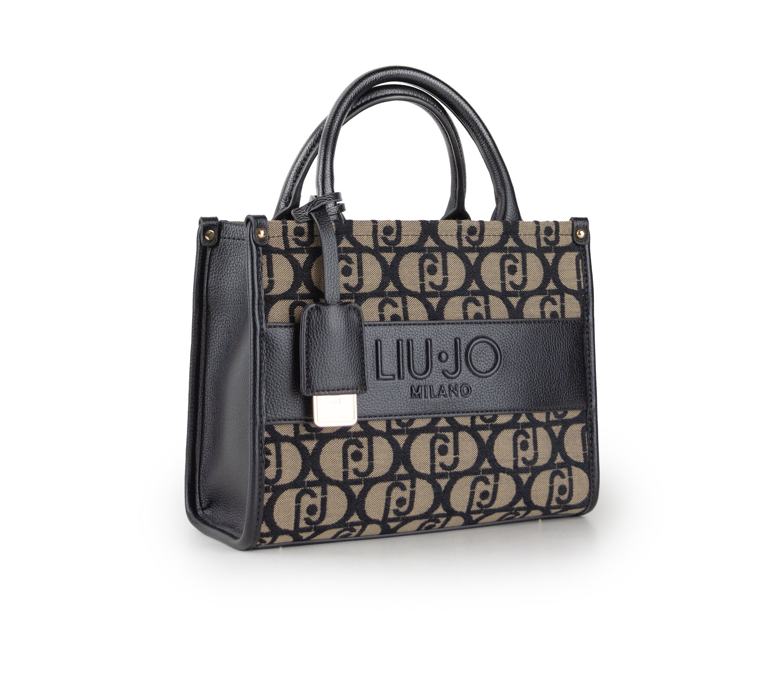 Mini borsa shopping in tessuto jacquard con logo in rilievo, dotata di manici confortevoli e tracolla regolabile e rimovibile. Include charm brandizzato, piedini metallici sul fondo e chiusura con zip. La fodera interna garantisce cura dei dettagli, mentre l’accessorio si presta a essere indossato sia a spalla che a tracolla con eleganza.