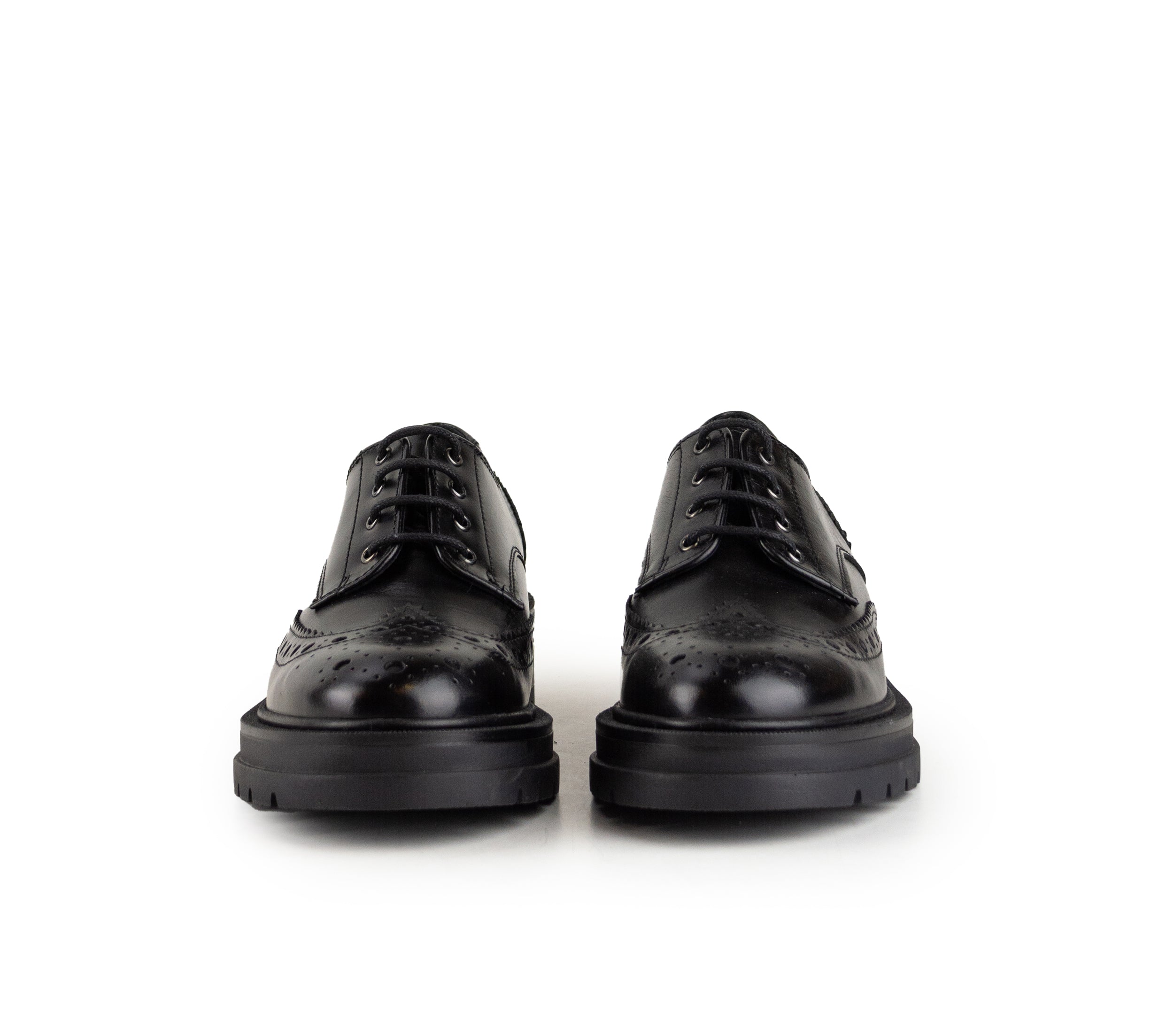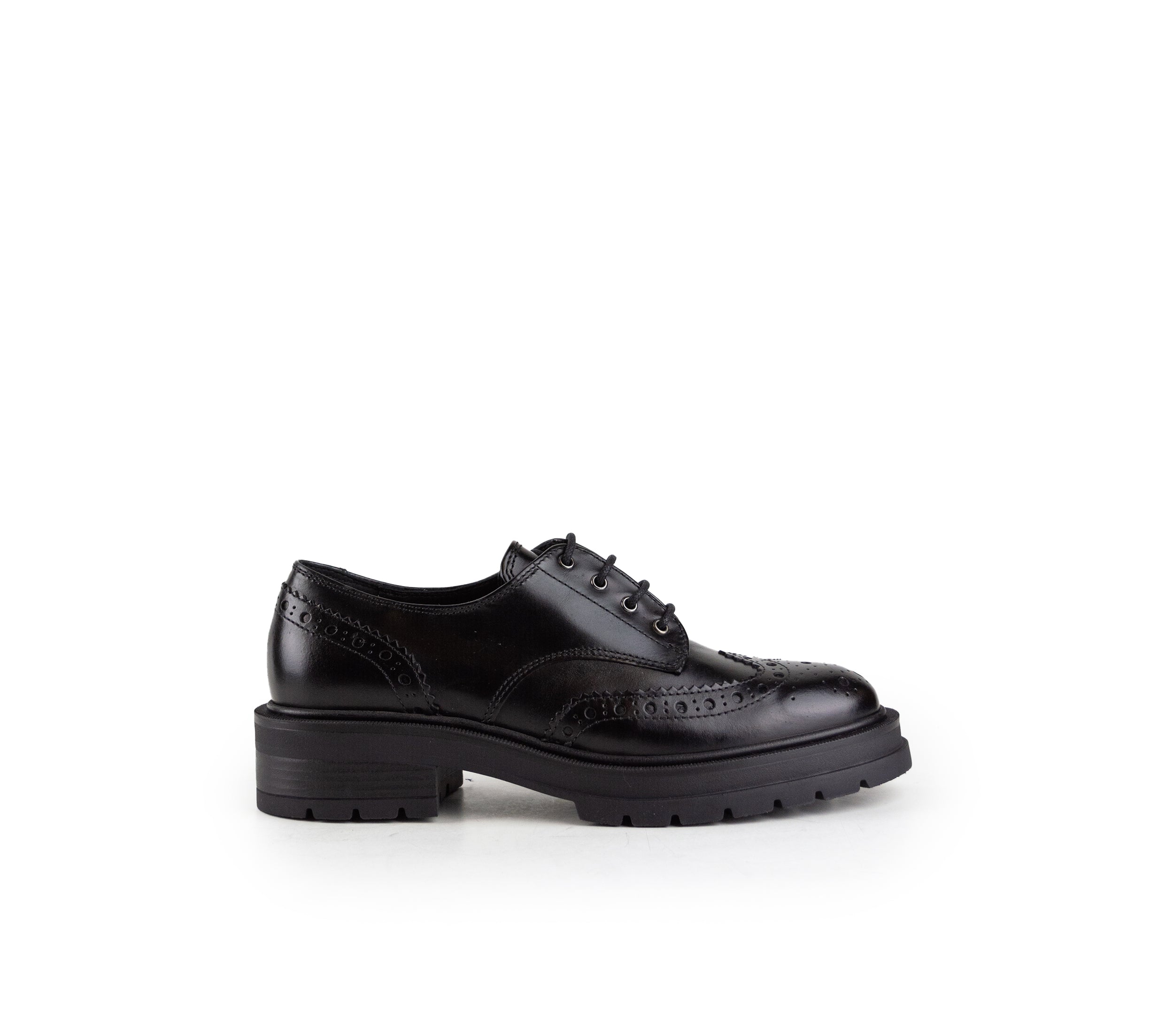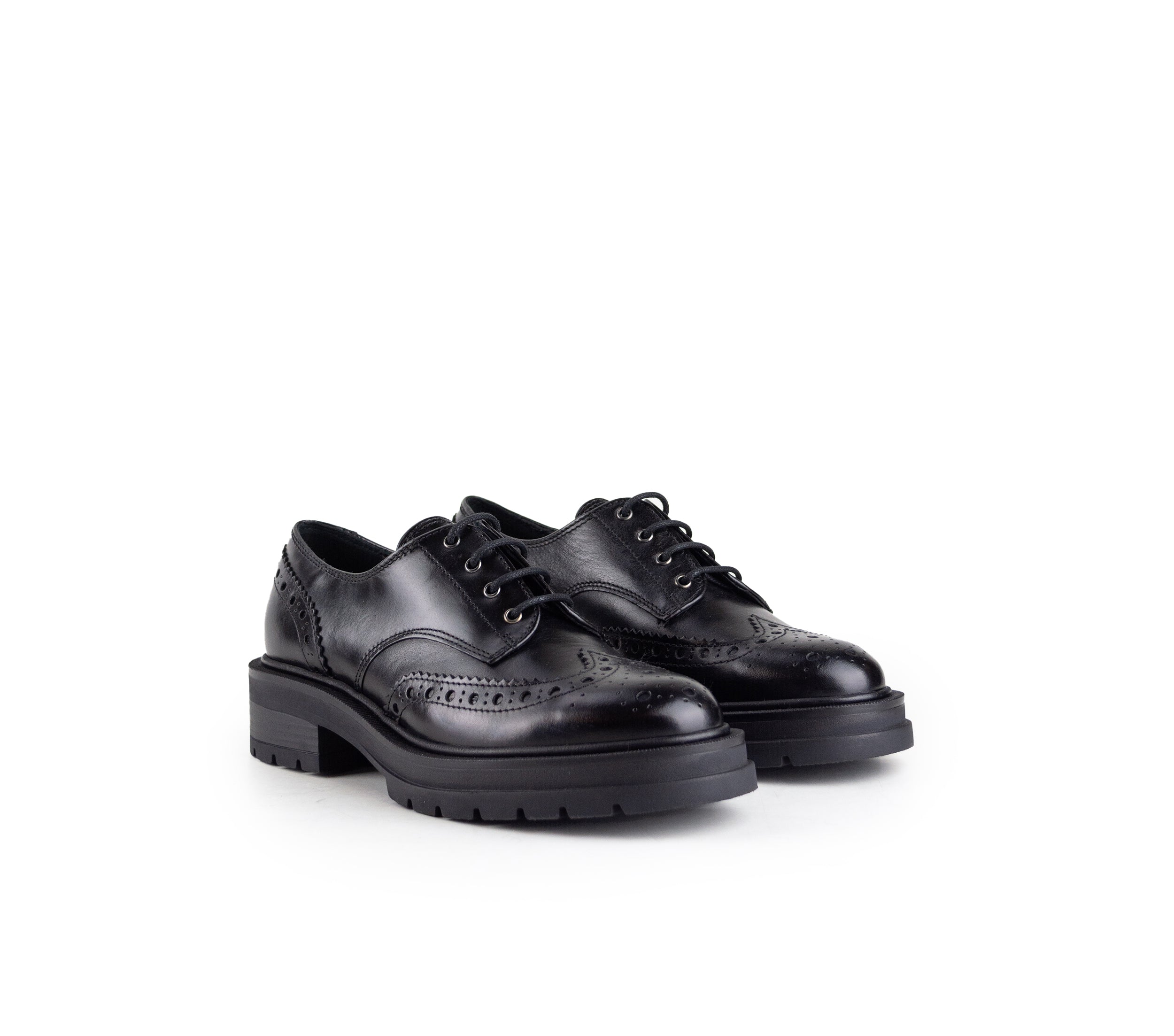 Scarpa dallo stile Oxford con suola carrarmato che richiama un'eleganza old English, realizzata in pregiata pelle morbida. Tacco alto 2 cm. Tomaia in vitello, fodera in soffice pelle di capretto, suola in TR per il massimo comfort e resistenza.