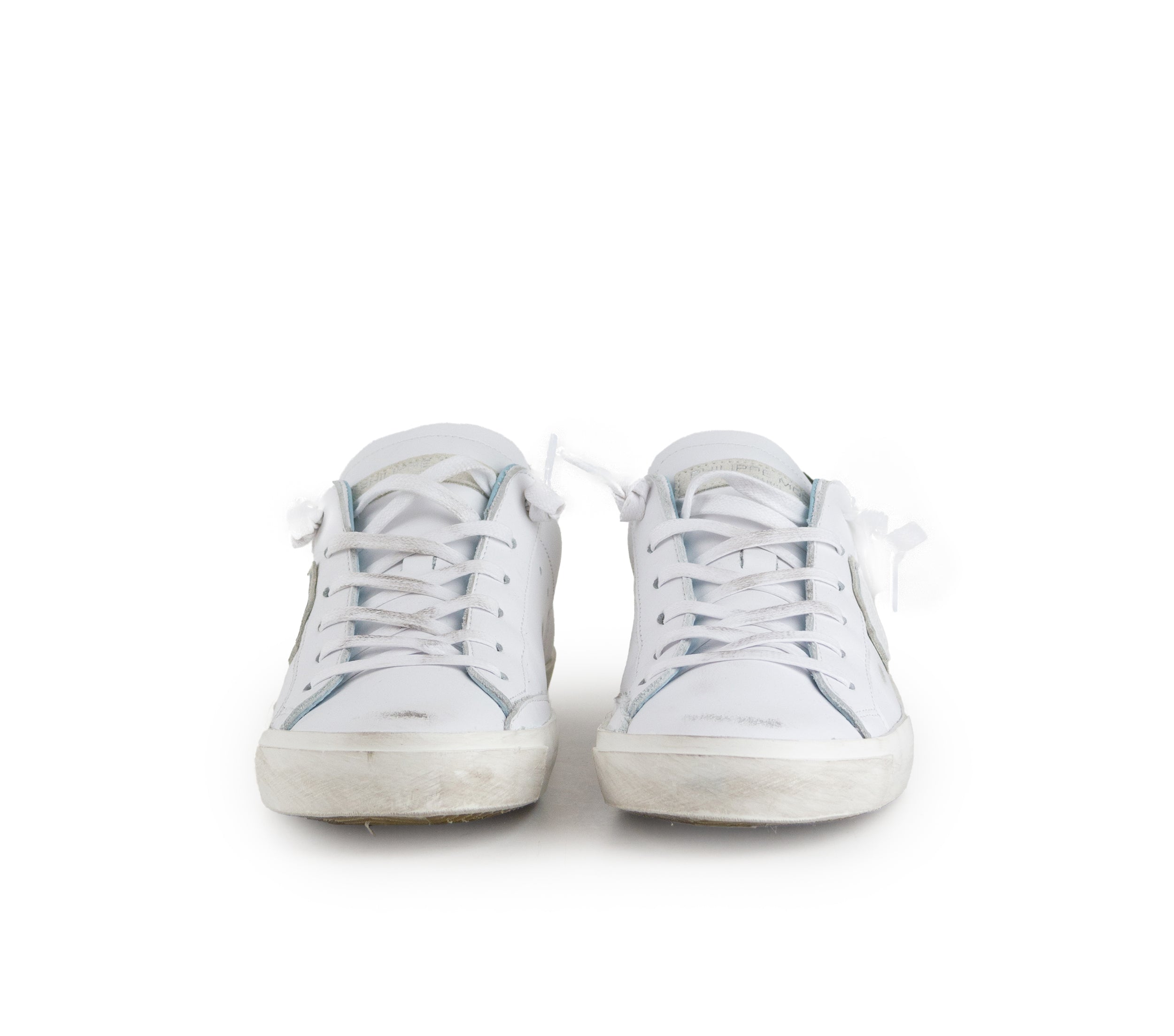 Minimalismo cromatico in bianco e nero definisce questa versione senza tempo della sneaker Prsx: silhouette ispirate agli anni ’80 dello streetwear, reinventate con un’estetica contemporanea e sofisticata. La tomaia, un mix raffinato di vitello e suede, è arricchita da un topponcino a contrasto e bordi specchiati, con una finitura used che dona carattere. La fascia laterale asimmetrica, realizzata a mano, presenta spazzolature che conferiscono un esclusivo effetto vissuto.