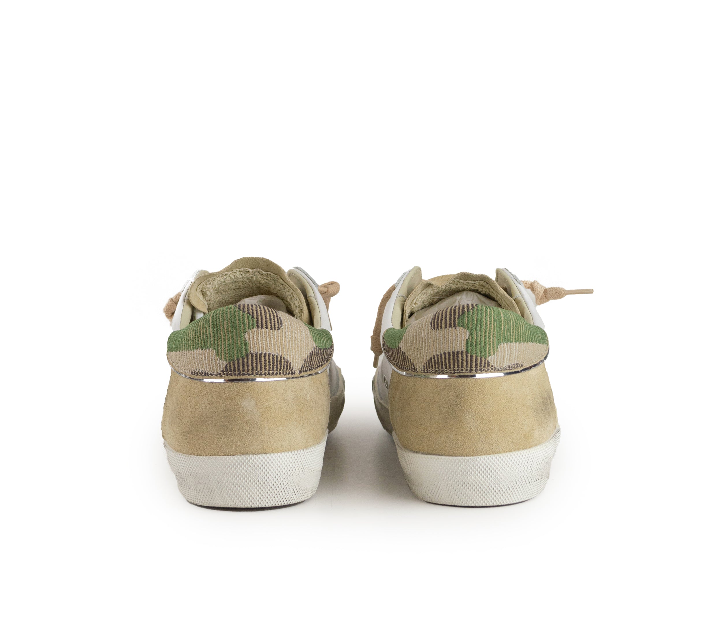 Le sneaker PRSX si distinguono per le finiture effetto used e la tomaia in pelle, elementi distintivi del modello. Questo design unico è arricchito da dettagli in suede e spoiler con stampa camouflage. Ispirate alle scarpe da skate anni '80, presentano linee essenziali e una suola con fasciatura artigianale e sporcature che conferiscono un autentico stile vintage.