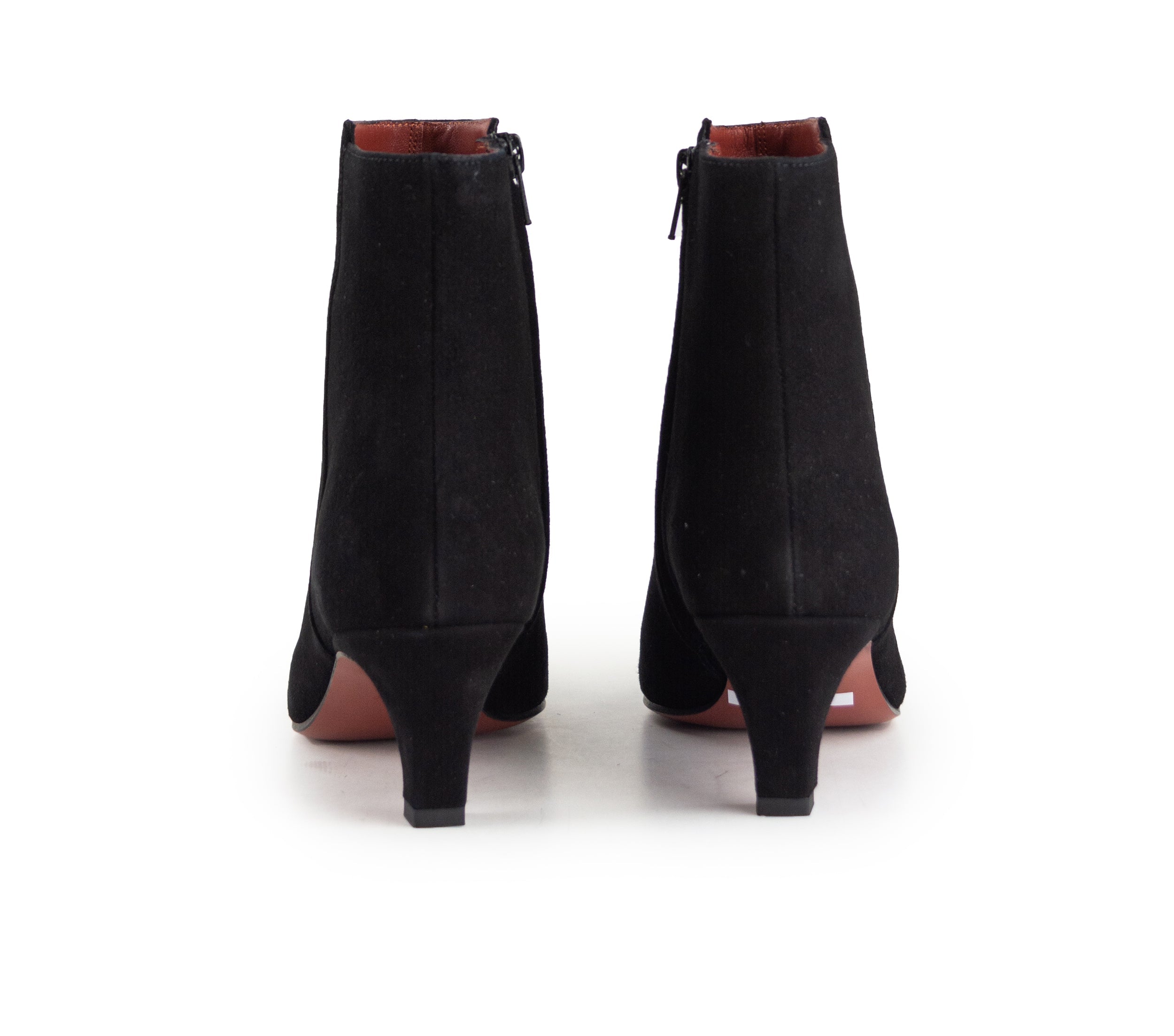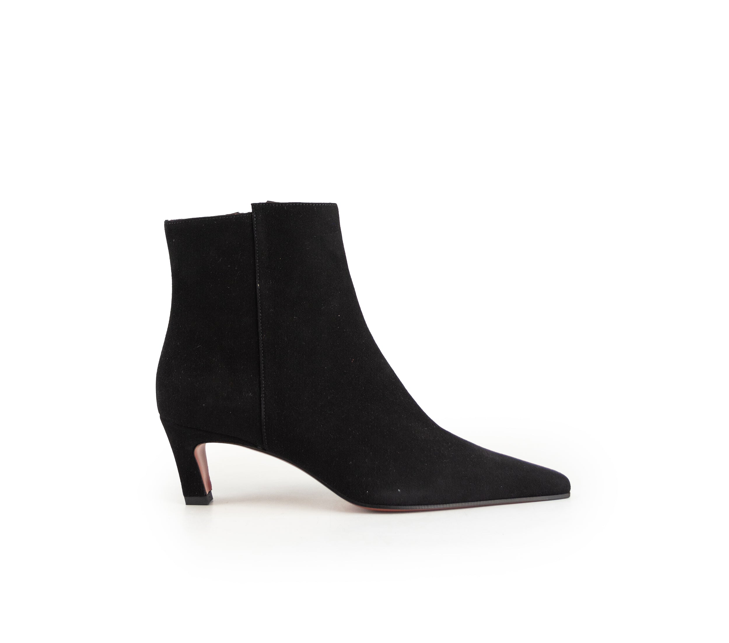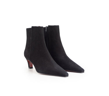 Lo stivaletto Milia, confezionato in pregiato agnello nero, unisce eleganza e versatilità. Il tacco di 5 cm assicura comfort e sostegno, ideale per arricchire con raffinatezza tanto un look casual quanto una mise più sofisticata.