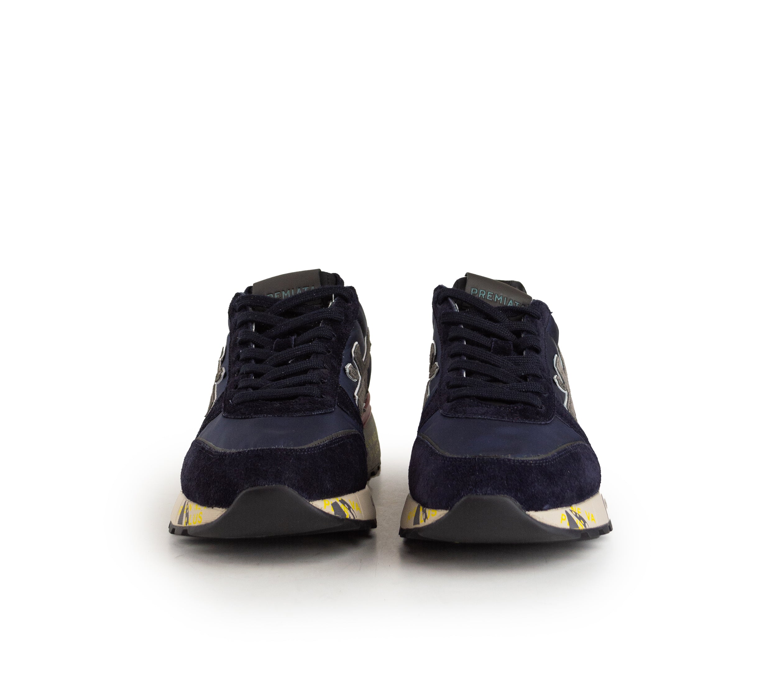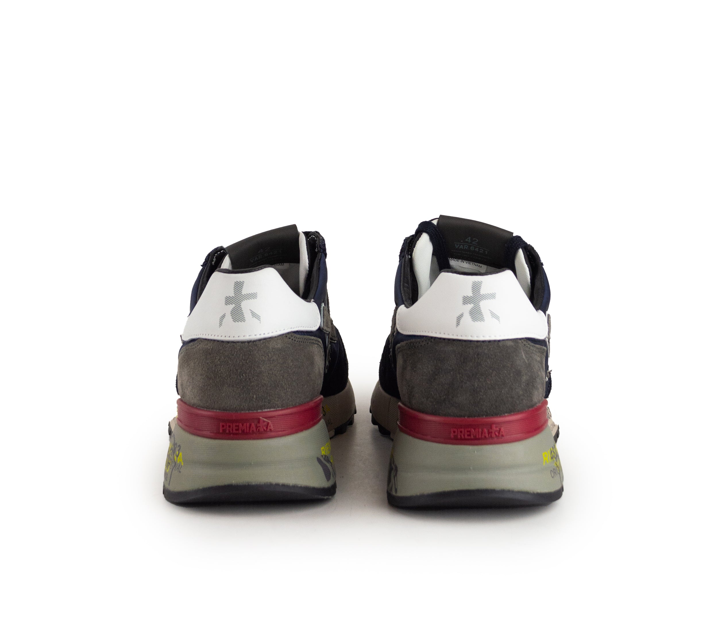 Le sneakers Mick combinano materiali diversi e pelli pregiate, presentandosi in un elegante nero per un look casual sofisticato. La silhouette distintiva è valorizzata dall’esclusivo logo Premiata, simbolo di stile raffinato.