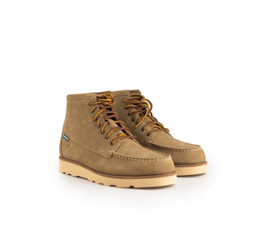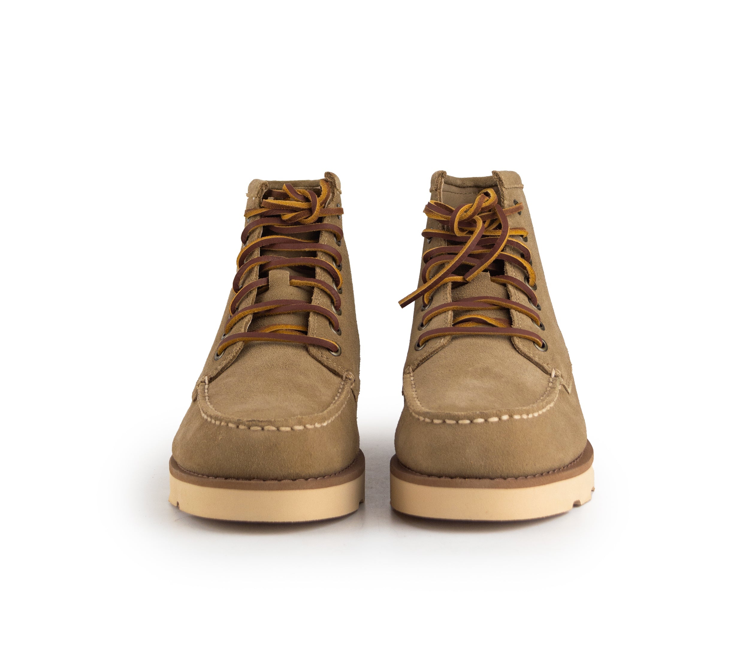 Lo stivaletto Tala celebra le radici Sebago, richiamando lo stile e la lavorazione delle calzature tradizionali dei nativi americani. Realizzato in pregiata pelle scamosciata arricchita da oli selezionati per una texture raffinata, si distingue per le emblematiche cuciture a zig-zag e i lacci quadrati in cuoio che rievocano la tradizione Navajo. Il fondo in EVA scolpita garantisce leggerezza e una presa sicura su ogni superficie, per un connubio perfetto tra eleganza e funzionalità.