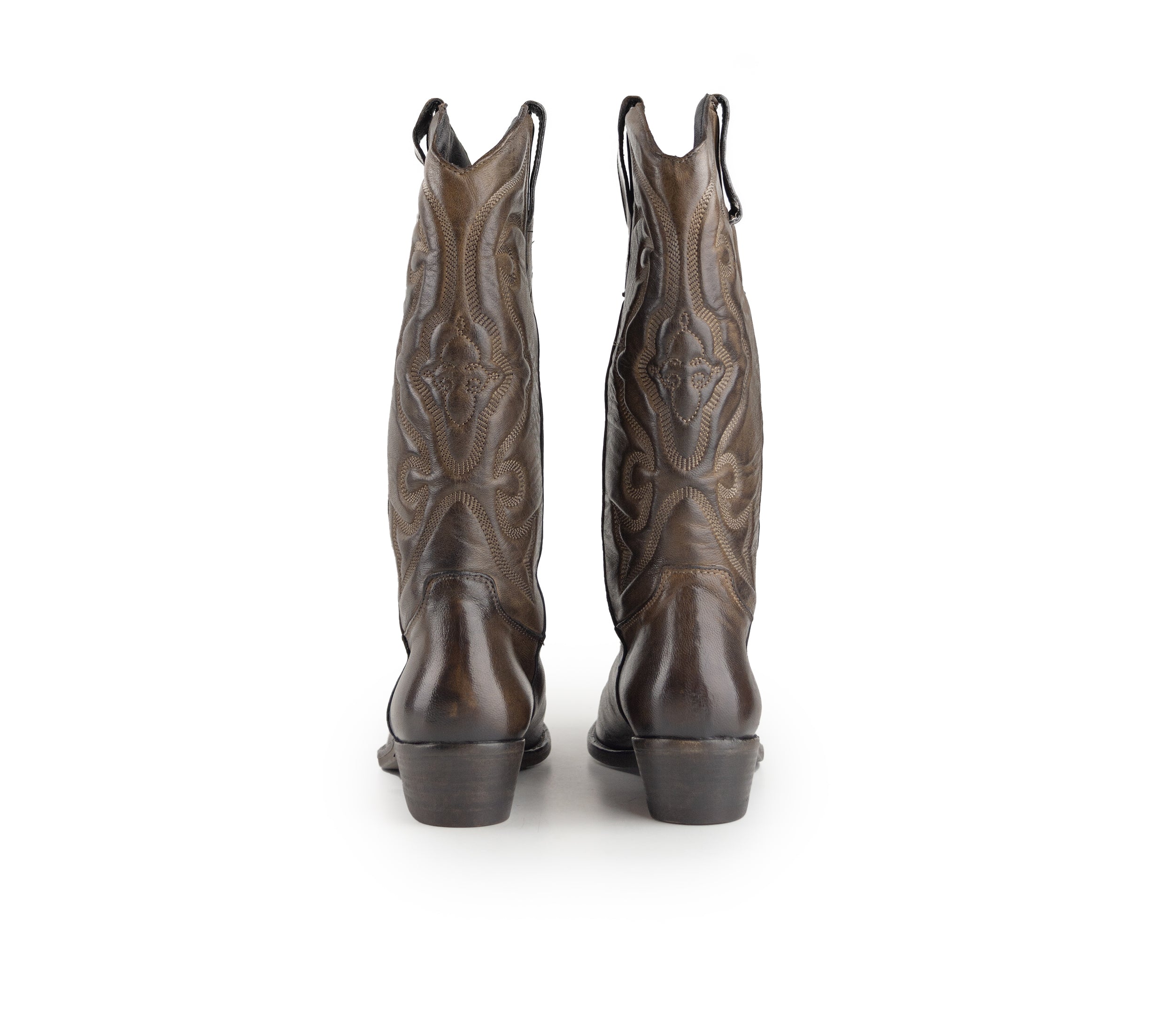 Calzatura texana dal design audace, realizzata in pregiata pelle nera. La forma affusolata e la maestria artigianale italiana conferiscono a questo stivale un’eleganza senza tempo e prestigio distintivo.