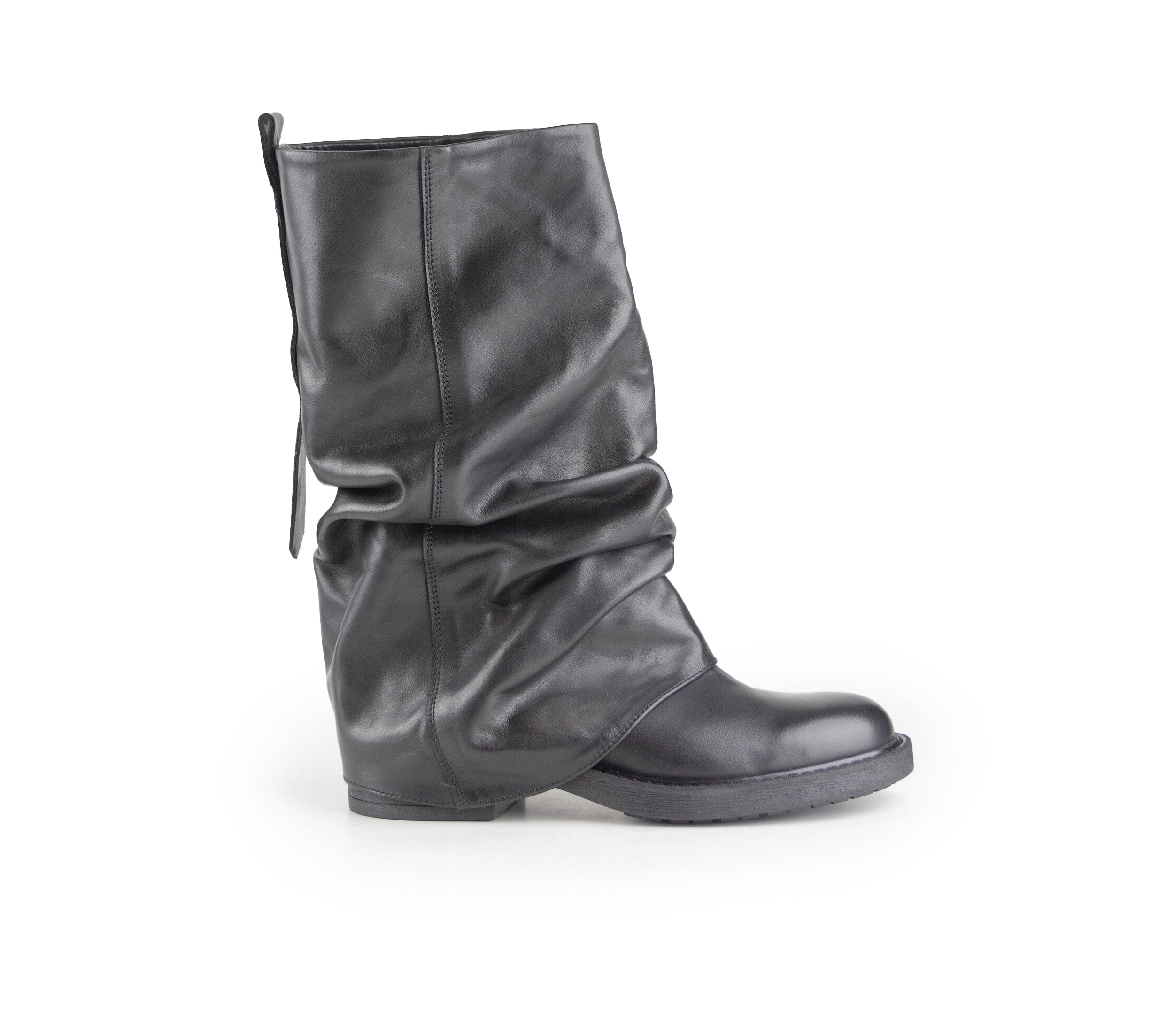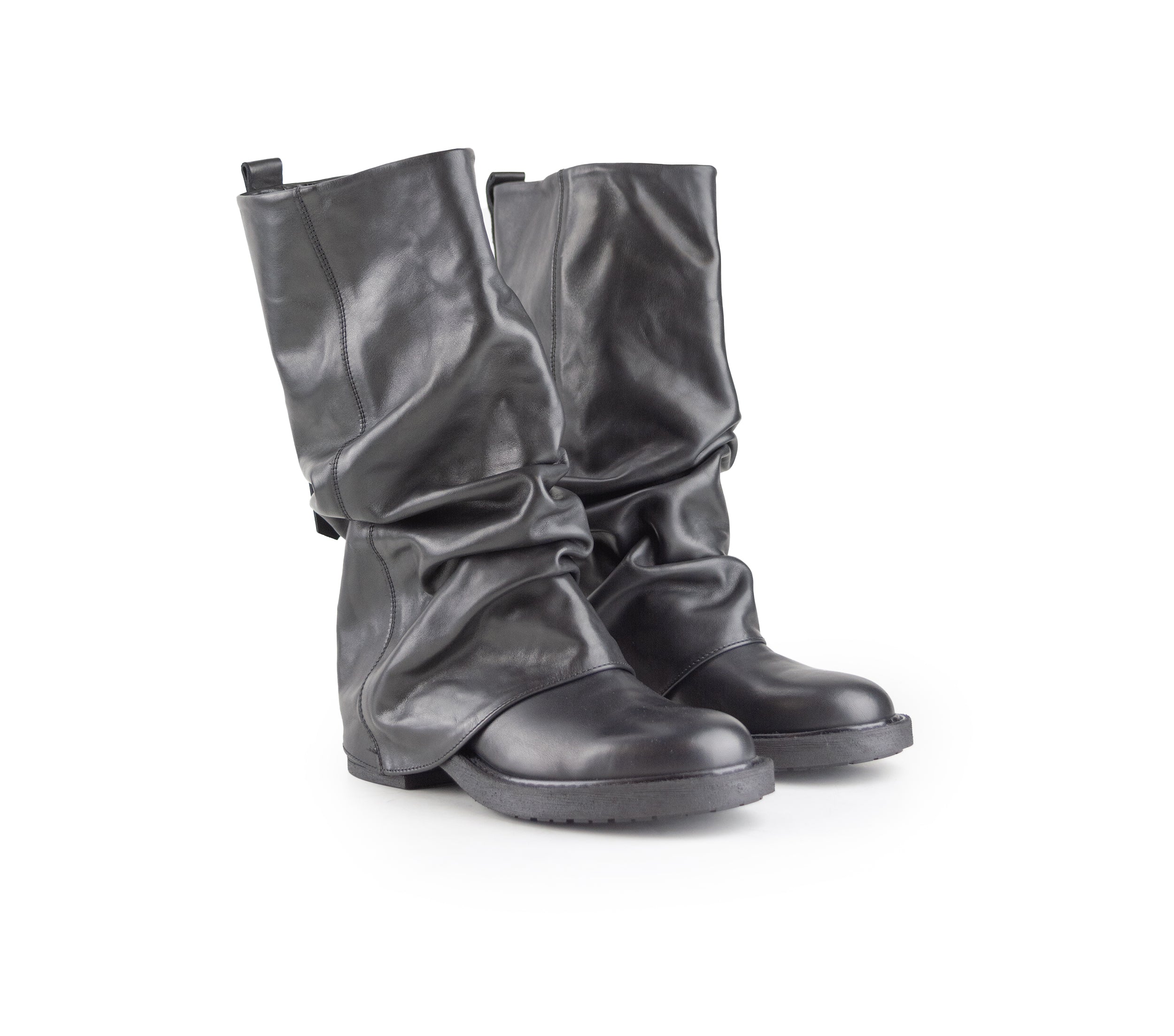 Stivali biker realizzati in pregiato vitello nero. Questo modello presenta una tomaia in vitello, fodera in ecopelle e soletta in pelle per un comfort superiore. La suola in gomma garantisce una calzata sicura. Il design a tubo con chiusura semplice e il tacco alto 4 cm esaltano l’eleganza dello stivale. Gambale alto 29 cm con larghezza di 36 cm per una vestibilità impeccabile e uno stile deciso.